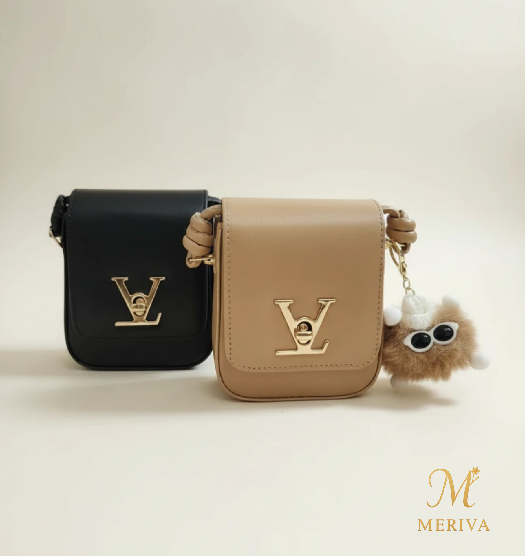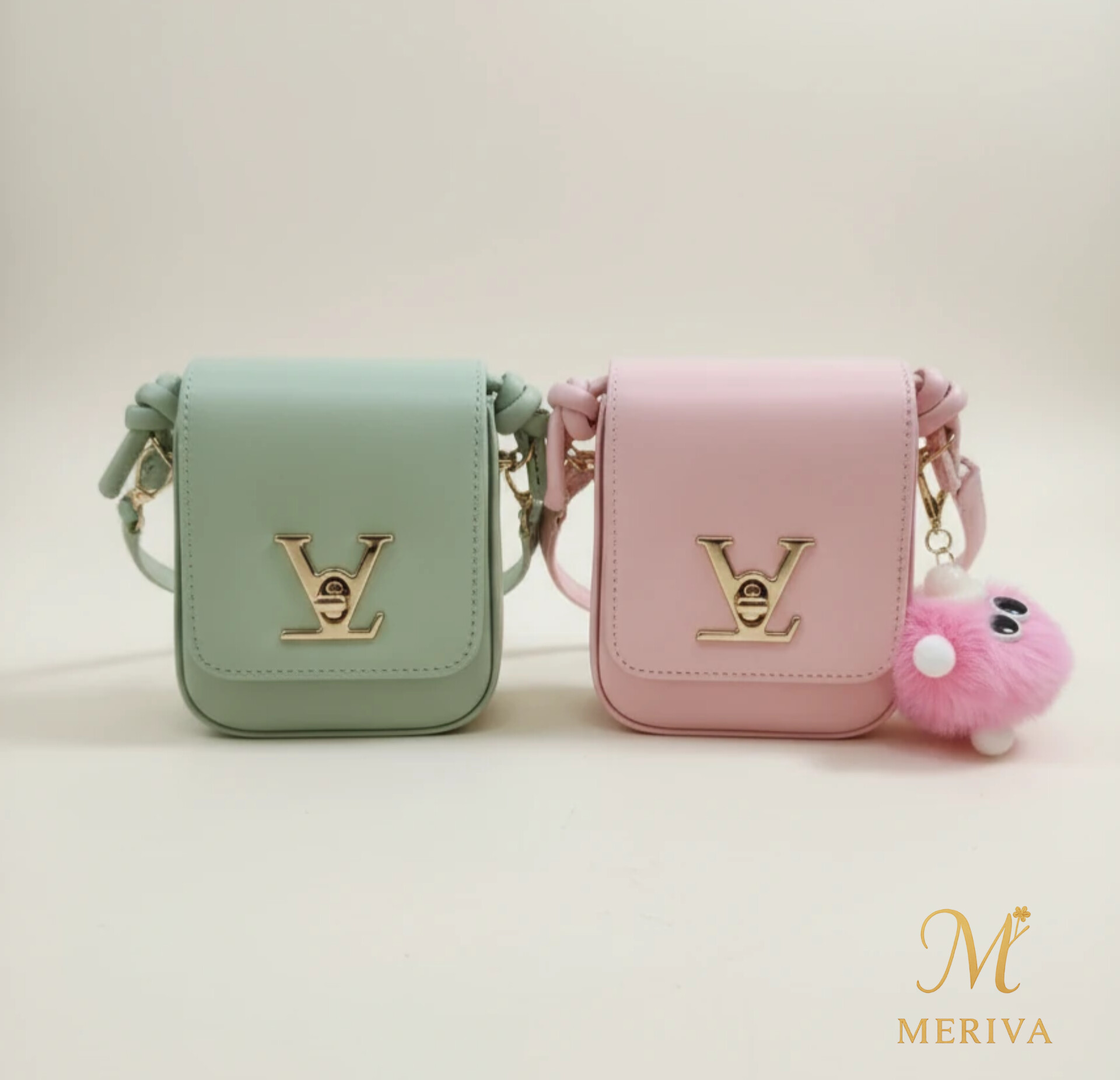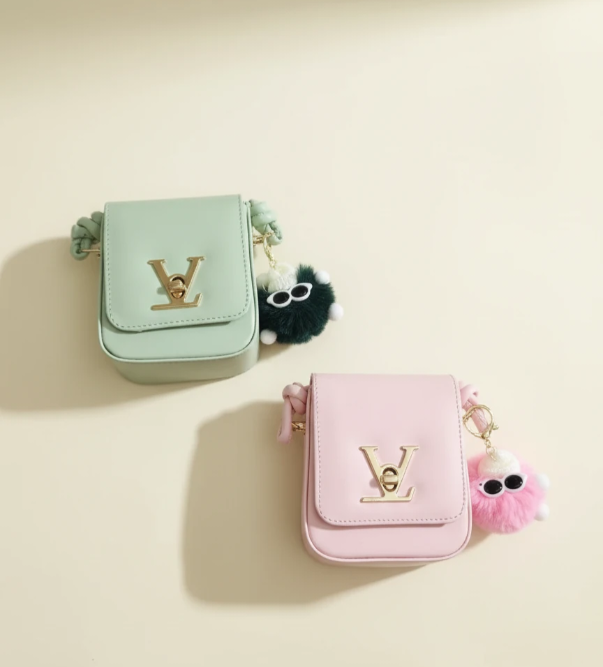 کیف زنانه مینی اویز دار مدل LV کد 206 ویژگی کالا: جنس چرم مصنوعی بند بلند از جنس کیف یراق طلایی رنگ ثابت آویز کیوت مینی و پینترستی طول ۱۳ و عرض ۱۱